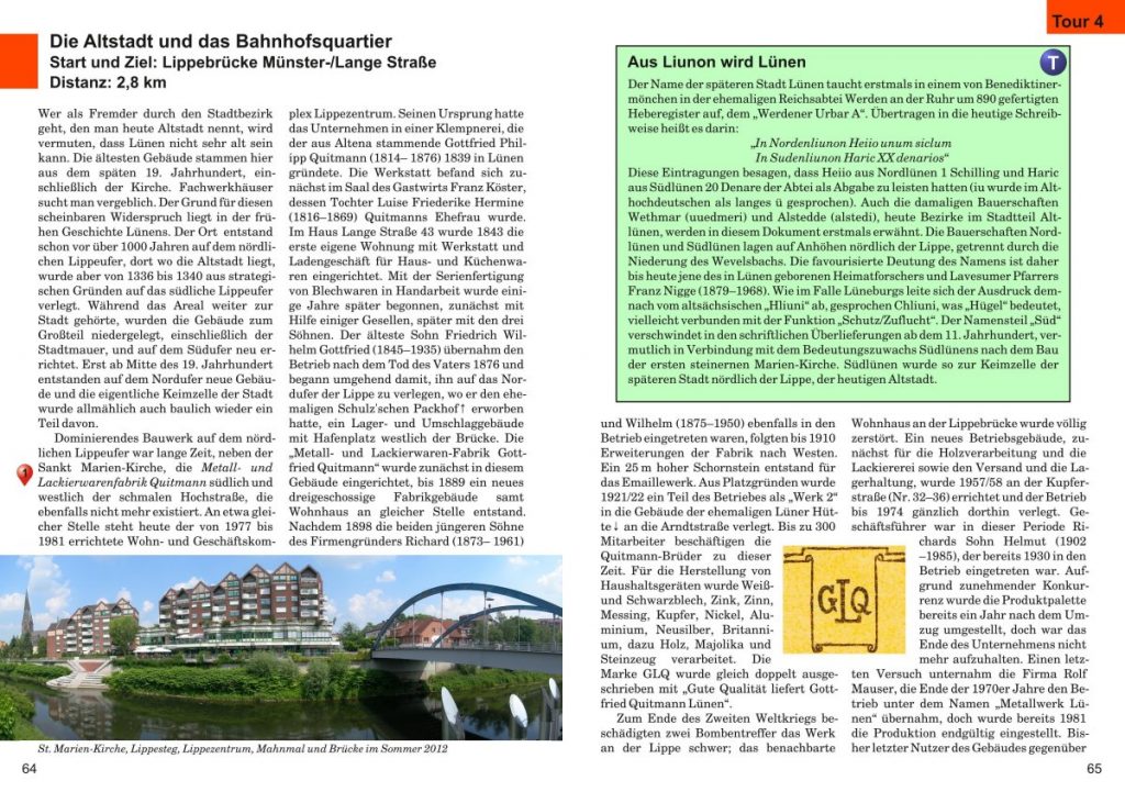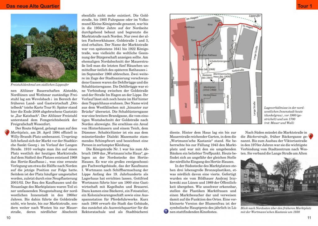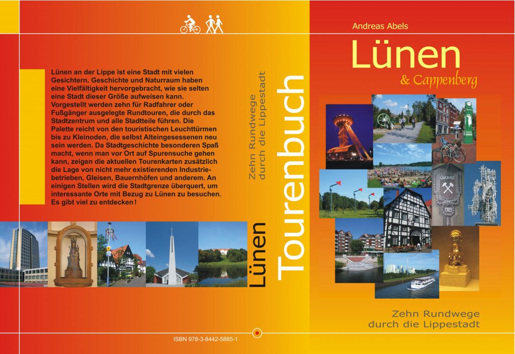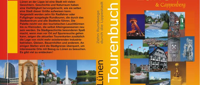 Tourenbuch Lünen & Cappenberg Layout, Text, Fotos und Druckvorstufe für Stadtführer mit Wegekarten (Format A 5, ePubli-Verlag, 210 Seiten, 11 Karten) Cover (Deckel und Rücken) Doppelseite mit Kapitelüberschrift und Themenblock Doppelseite mit Detailkarte Doppelthemenseite Doppelseite mit Kartenblatt